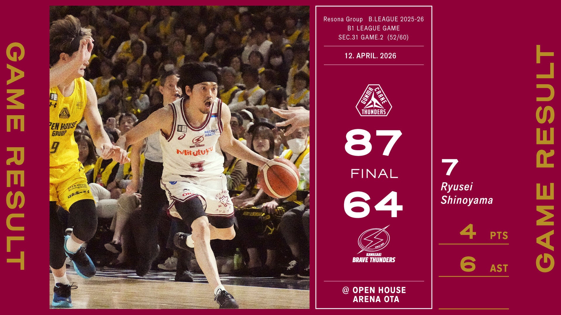 | 2 | 群馬クレインサンダーズ | 36 | 16 | 0.692 | 3.0 |