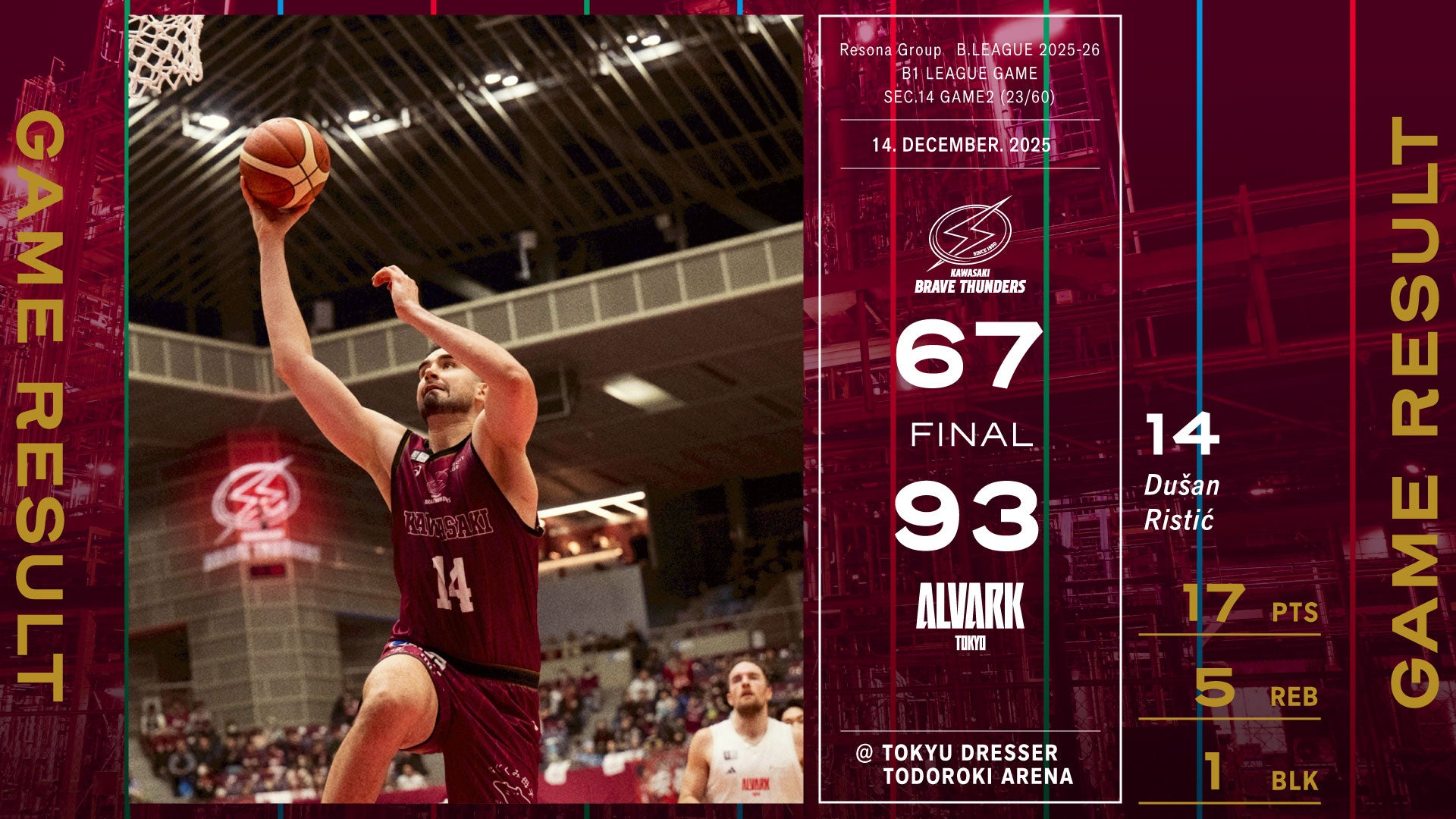 12/14 ●川崎 67-93 A東京○ りそなグループB.LEAGUE 2025-26 B1リーグ戦 第14節GAME2 (23/60)