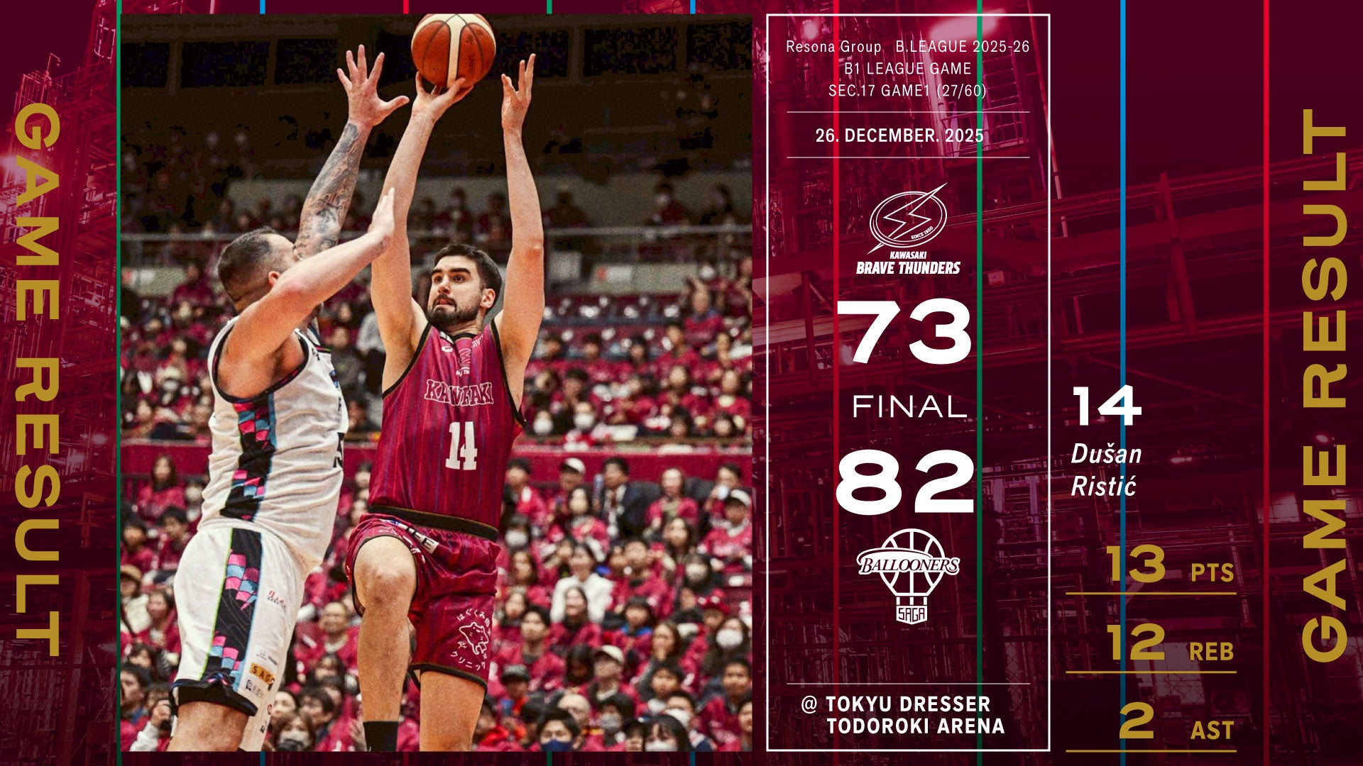 12/26 ●川崎 73-82 佐賀○ りそなグループB.LEAGUE 2025-26 B1リーグ戦 第17節GAME1 (27/60)