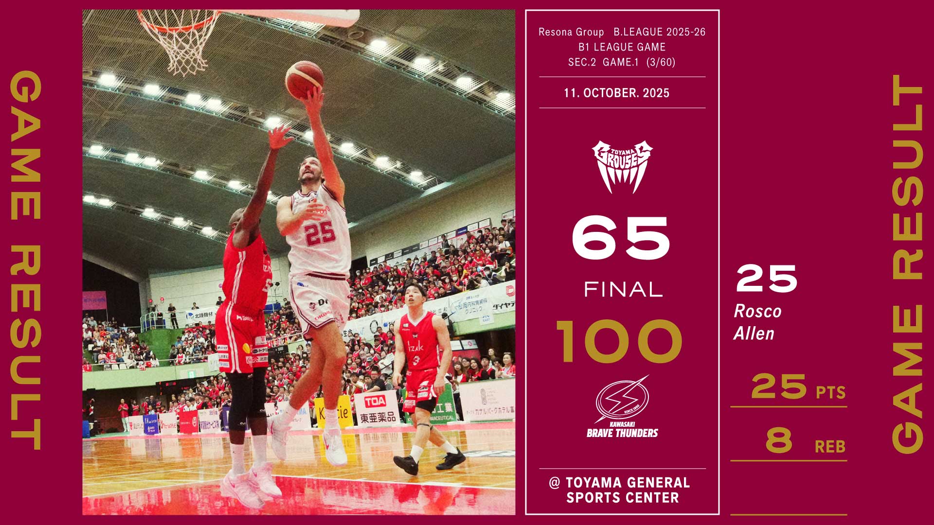 10/11 ●富山 65-100 川崎○ りそなグループB.LEAGUE 2025-26 B1リーグ戦 第2節GAME1 (3/60)