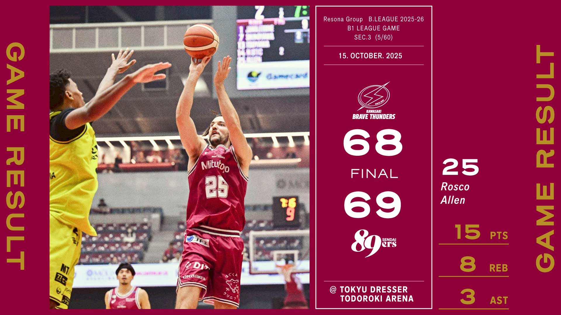 10/15 ●川崎 68-69 仙台○ りそなグループB.LEAGUE 2025-26 B1リーグ戦 第3節 (5/60)