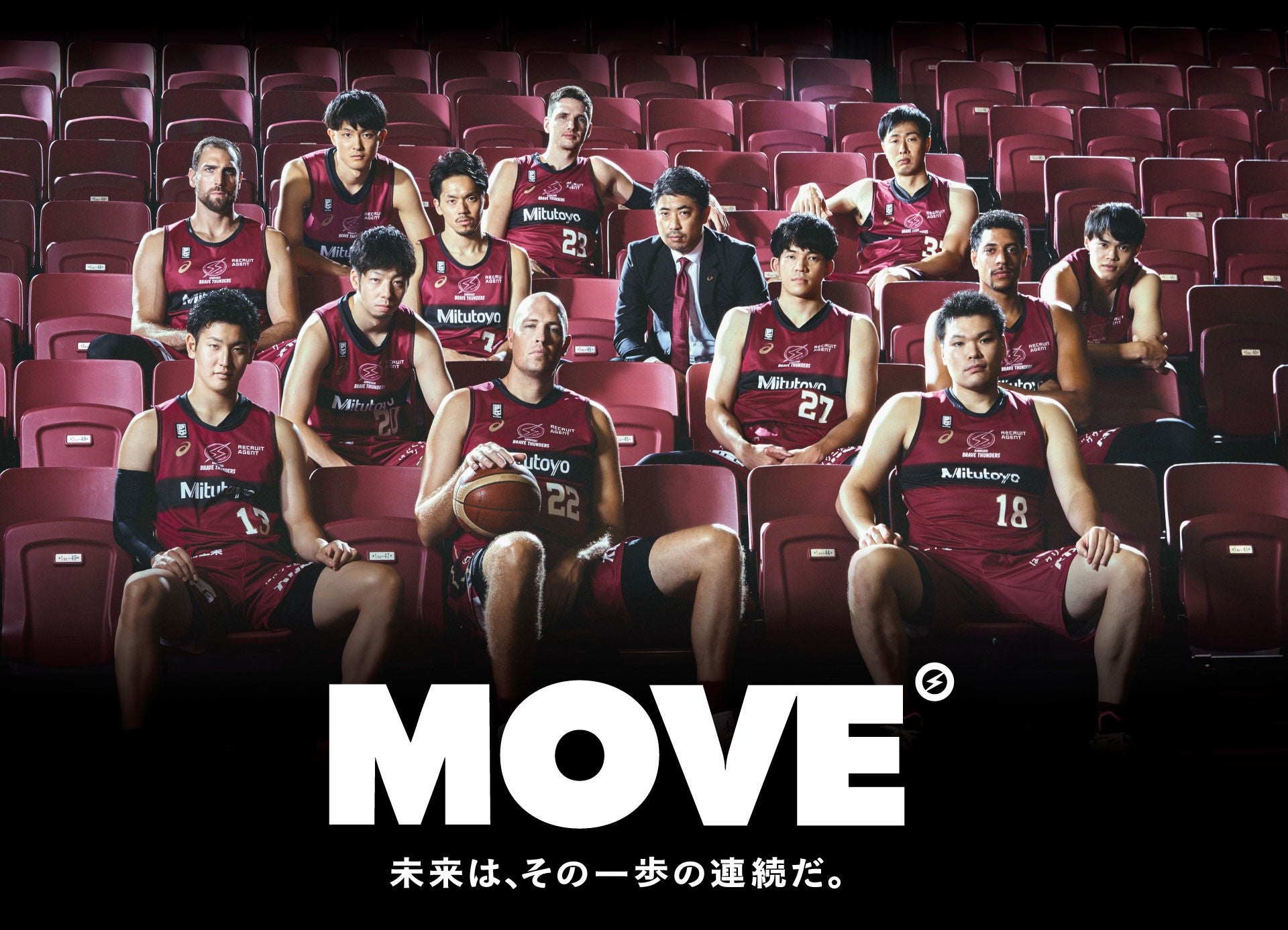 今季のシーズンスローガン『MOVE』には、「試合中、常に選手全員が激しく動くチームである」、「見てくれる人たちを感動させるプレーをする」、「未来に向かって全員で動き出す」という3つの想いを込められています。