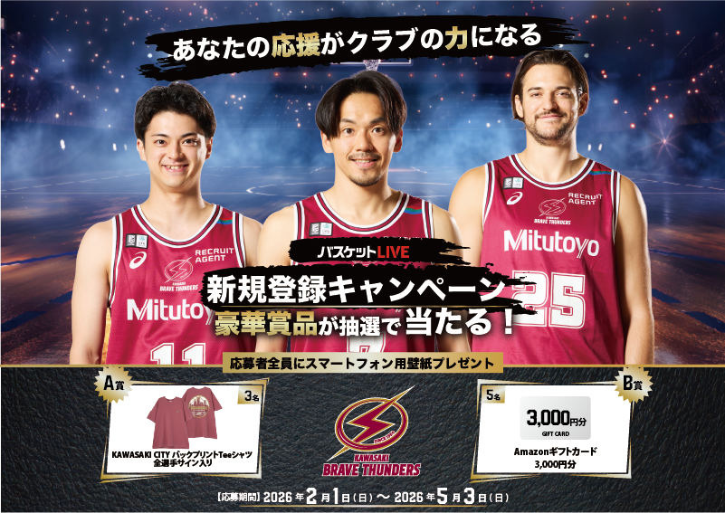 【PR】川崎ブレイブサンダース専用URLから登録して豪華賞品をゲットしよう「バスケットLIVE 新規登録キャンペーン」実施のお知らせ