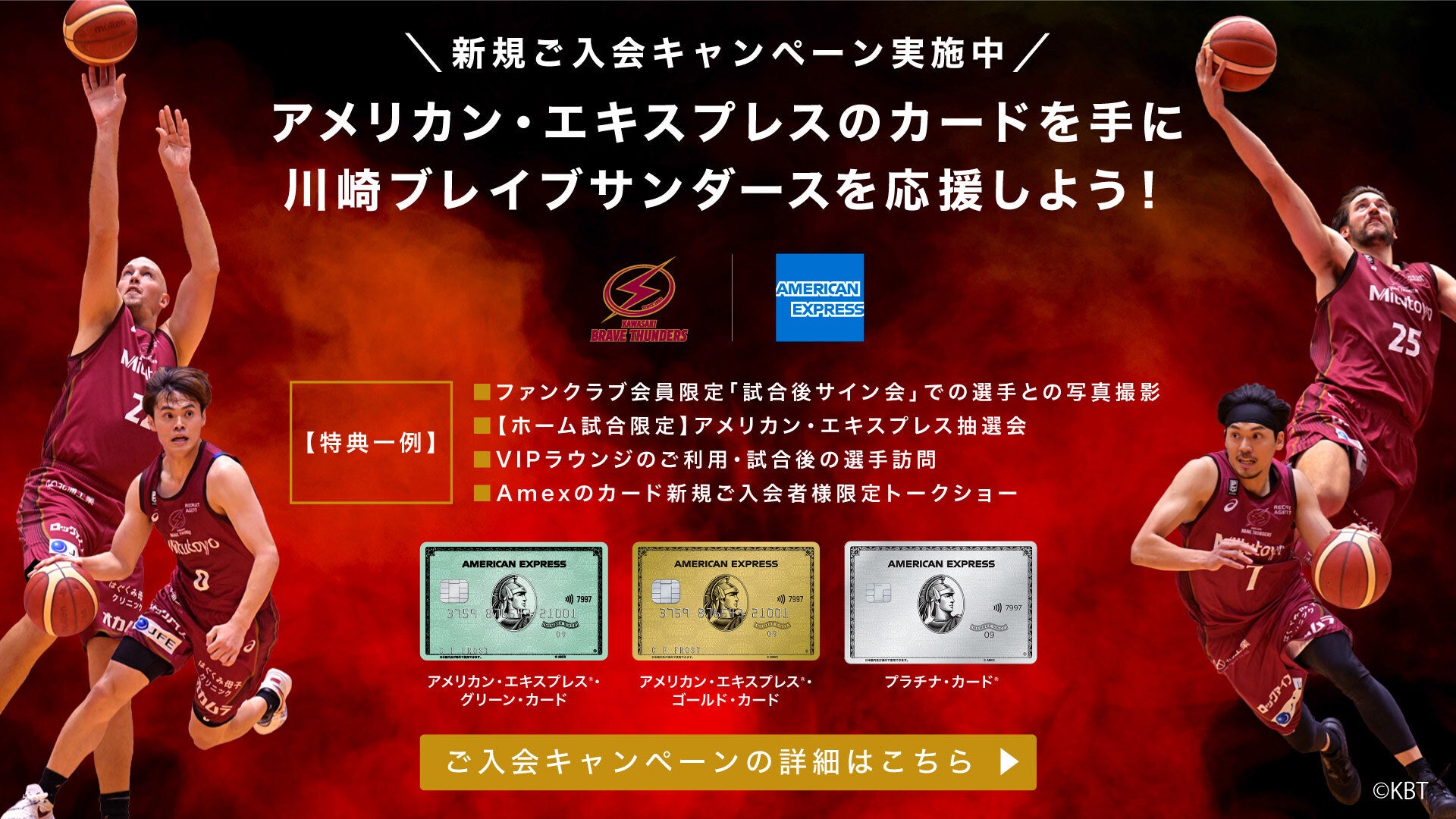 このたび、川崎ブレイブサンダースでは「アメリカン・エキスプレス新規カード入会キャンペーン」を実施いたします。