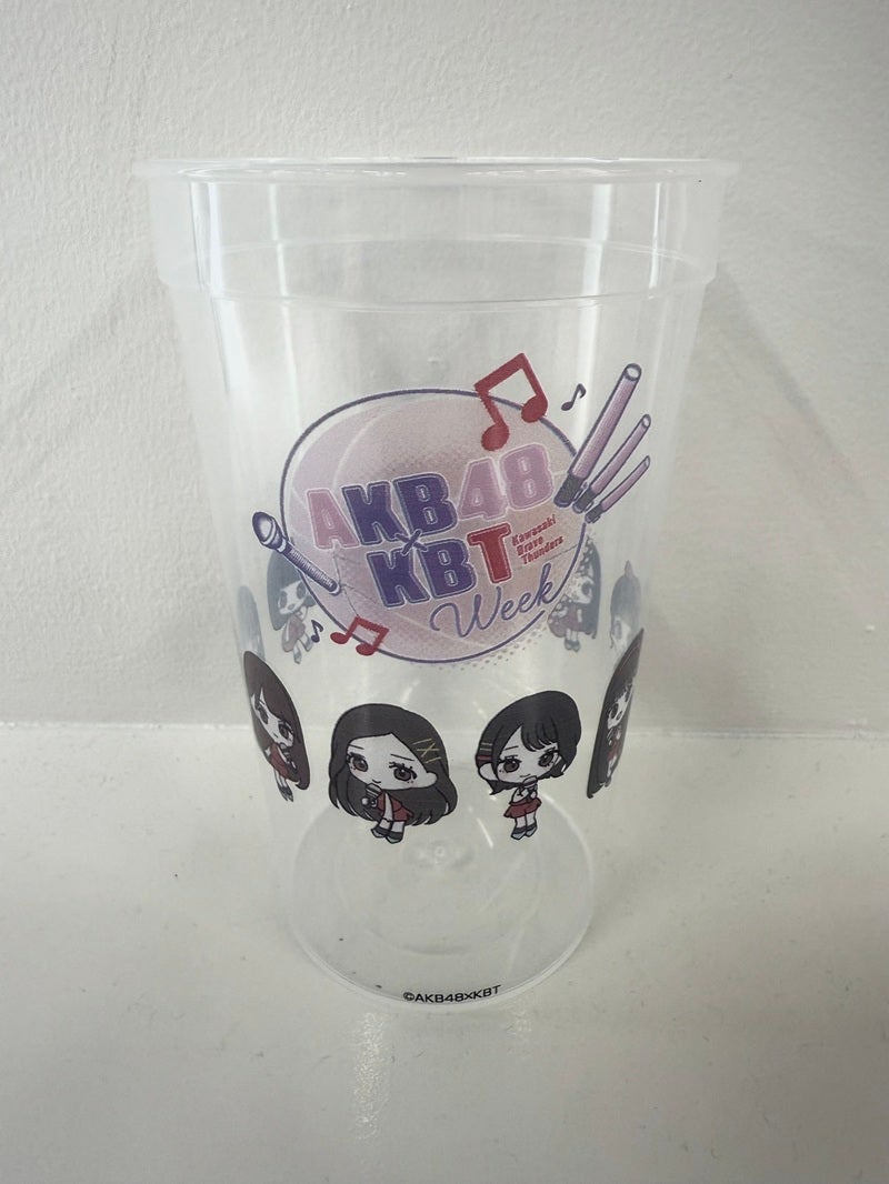 AKB48×KBT WEEK のLOGOとAKBバスケ部メンバーのイラストが入ったスーベニアカップ。メロンソーダ味で飲み終わった後はそのままお持ち帰りいただけます。