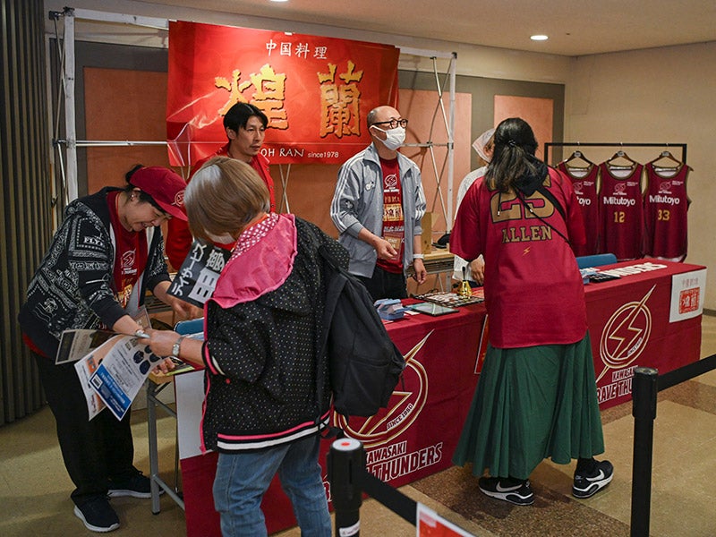 選手サイン入りユニフォームや中国料理 煌蘭 川崎店で使用できるお食事券が当たるガラポン抽選会。中国料理 煌蘭SNSのフォロー画面ご提示で抽選に参加できます。