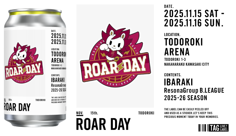 「TAG LIVE! LABEL」は各節ごとに限定のデザインを施した、その日・その場所だけでしか購入できない、特別なデザイン缶です。ラベルは”二重シール”になっていているので、ラベルのみを保管することもでき、来場の記念となる商品です。2024-25シーズンから販売を開始し、大変好評をいただいたことから、2025-26シーズンも継続して販売することが決定しました。