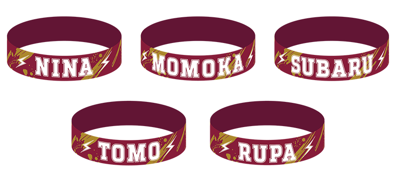 ブレイブレッドをベースに、メンバーのネームを入れたシリコンブレスレットです。試合観戦時など複数本を身に着けて応援していただくのもおすすめです。