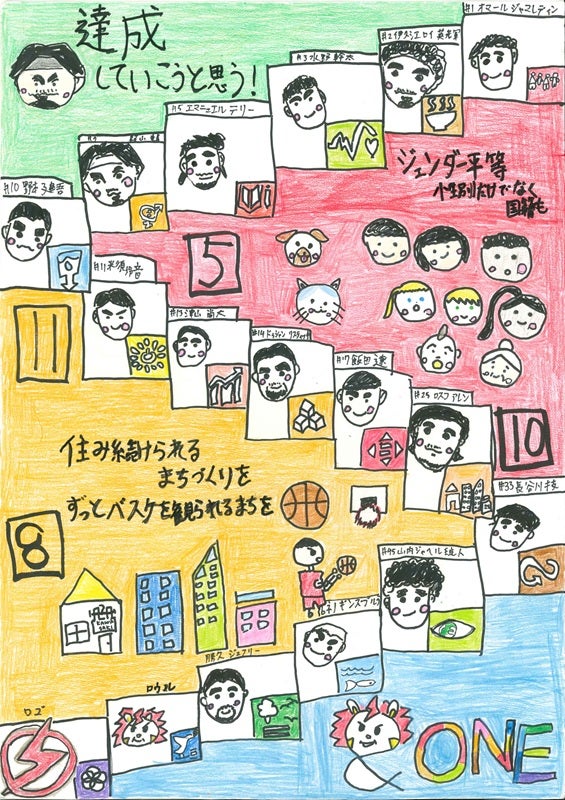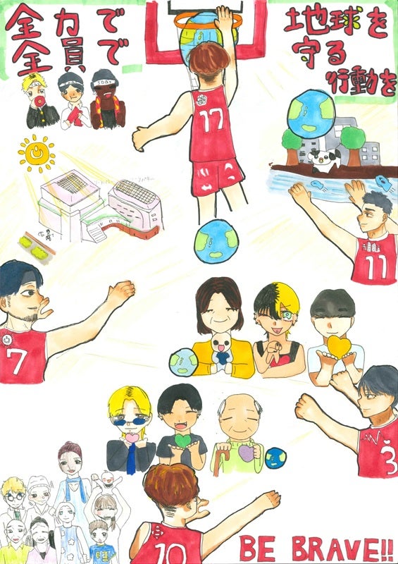 バスケットもSDGsも仲間と一緒に力を合わせてゴールを目指すことが大事という想いをしっかりと感じることができました。また、地球をトロフィーに見立てたり、「!」に川崎ブレイブサンダースのクラブロゴであるブレイブレッドの稲妻を用いるなど、自由で遊び心のある発想も素敵だと感じました。