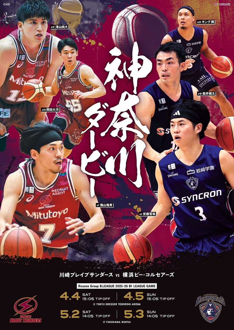 このたび、りそなグループ B.LEAGUE 2025-26シーズン B1リーグ戦での川崎ブレイブサンダースと横浜ビー・コルセアーズの試合を、今シーズンも『神奈川ダービー』として開催することが決定しましたのでお知らせいたします。