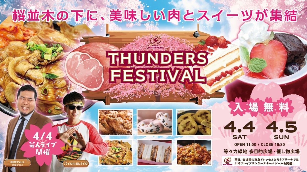 4月4日(土)、5日(日)に川崎ブレイブサンダース主催のフードフェス「THUNDERS FESTIVAL」の開催が決定しましたのでお知らせいたします。当日は川崎ブレイブサンダースのホームゲーム 横浜BC戦も行われ、コンテンツが目白押しの一日です。