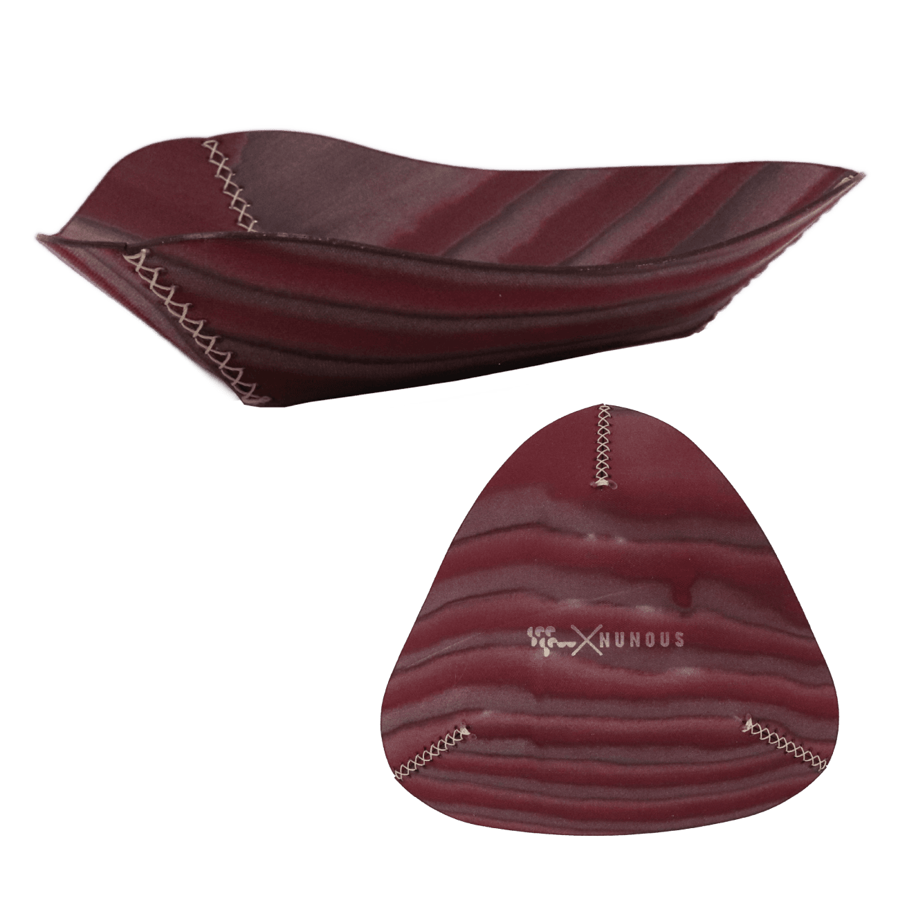 大理石のような1点ずつ異なる表情と多様な加工性を併せ持つNUNOUS(ニューノス)は、140年の歴史をもつ 老舗染色加工会社「セイショク」が、明日に向けて提案する全く新しい布由来アップサイクル素材です。布の色や質感を損なわないアップサイクル方法を可能にすることで、「見えない大量の廃棄」を「美しく見える化」しています。