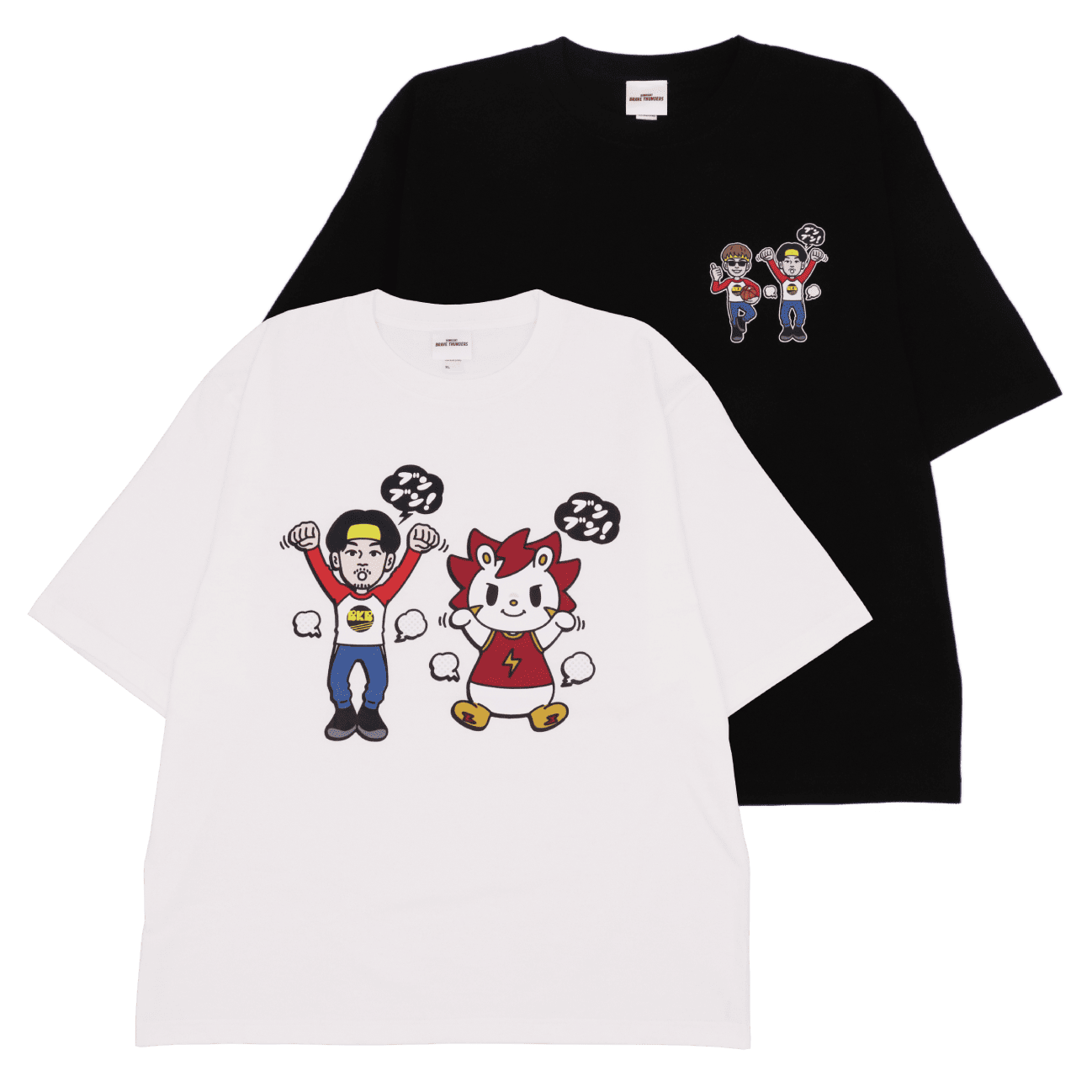 バイク川崎バイクさんといえばラグランTシャツ。芸人さんへのリスペストを込めたとっておきの一枚として、前面には描き下ろしイラスト、背面にはバイク川崎バイクさんと同じポーズをした篠山竜青選手の実写がデザインされています。