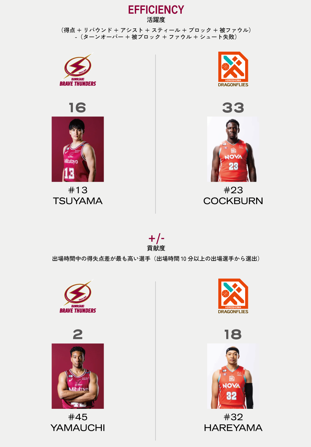 動画や画像に掲載されている数値・グラフ等の情報は、試合当日のスタッツが確定となった時点での数値となっております。後日記録が修正される場合がございますので、予めご了承ください。正式な情報はBリーグの公式WEBサイトでご確認ください。