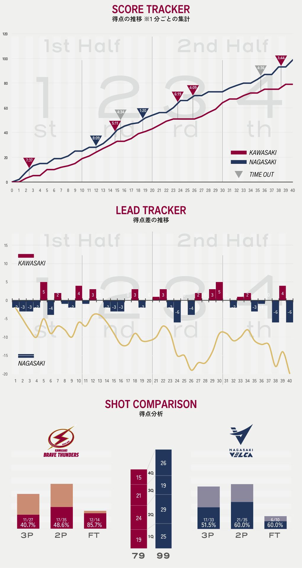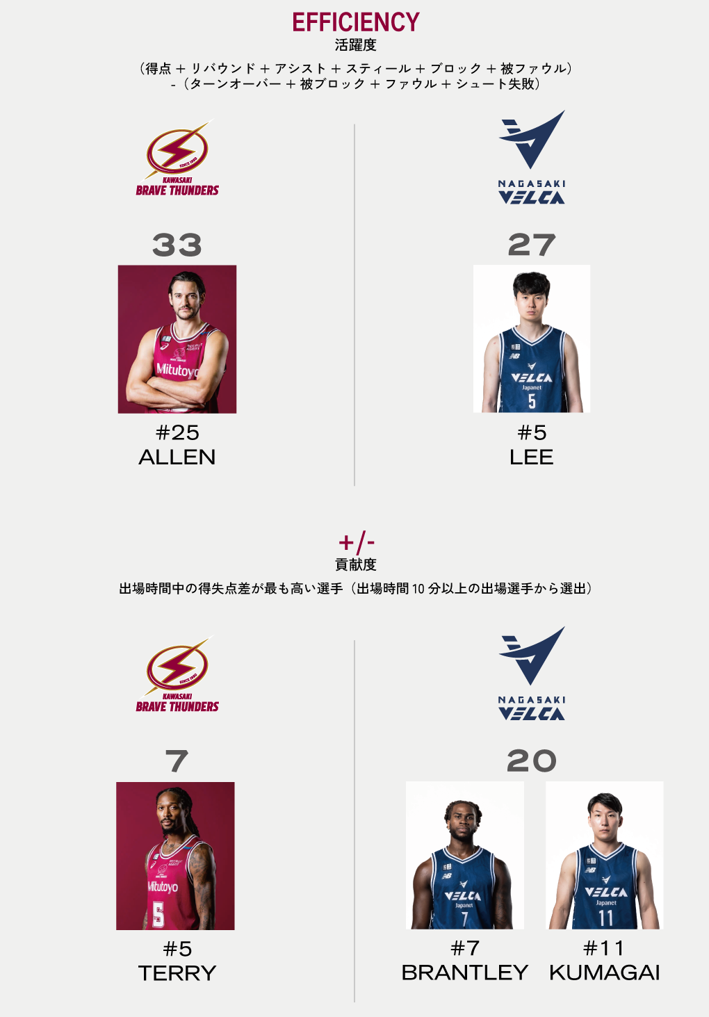 動画や画像に掲載されている数値・グラフ等の情報は、試合当日のスタッツが確定となった時点での数値となっております。後日記録が修正される場合がございますので、予めご了承ください。正式な情報はBリーグの公式WEBサイトでご確認ください。