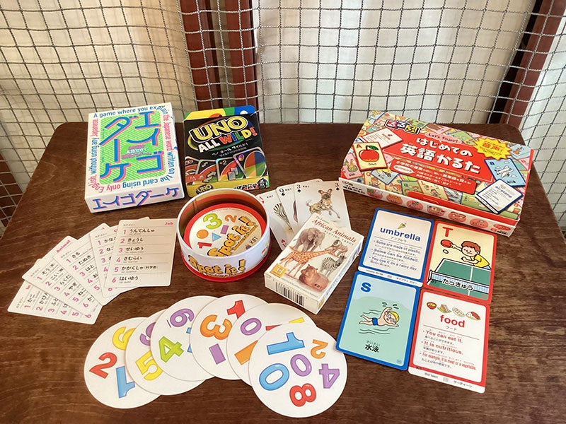 海外のゲームや英語版カードゲームを通じて、楽しみながら英語を学ぶことができます。外国籍スタッフのサポートのもと、友達と一緒に遊びながら自然に英語にふれ、楽しく学ぶ時間を過ごせます。 -